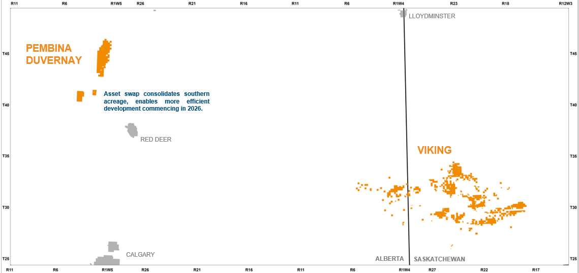 | Production (Q3/2025) | 10,200 boe/d (77% liquids) – Pembina Duvernay 9,400 boe/d (83% liquids) – Viking |